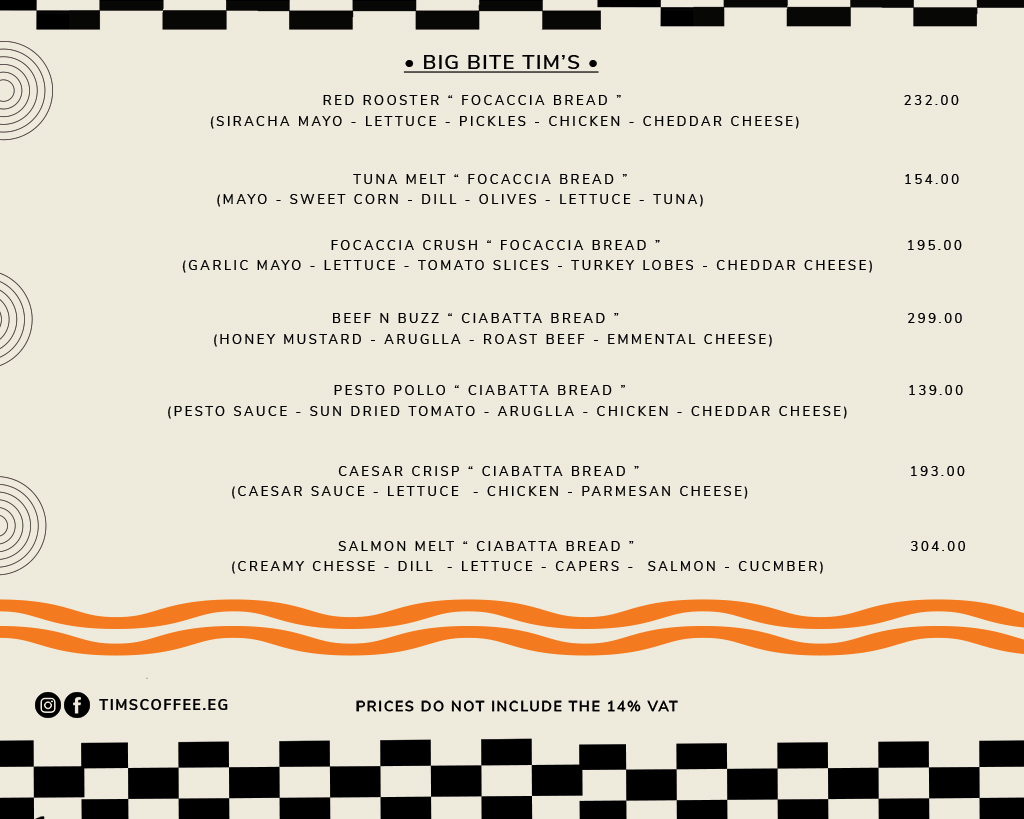 Tim's Coffee Menu